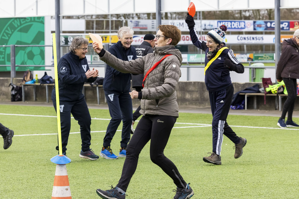 De Vitalityclub is een sportgroep voor ouderen waar iedereen vanaf 65 jaar elke week aan mee kan doen. De training is woensdag van 9 tot 10 uur. Aanmelden is niet nodig. Sia en Ilona: We trainen elke week op het kunstgrasveld bij Westlandia Voetbal. We doen oefeningen voor het uithoudingsvermogen, balans, geheugen en kracht. En er zit ook vaak een spelelement in. We bedenken iedere week weer leuke oefeningen. We zien ook dat de deelnemers steeds meer kracht en balans krijgen, dat merken ze zelf ook. Maar ook het sociale aspect is heel belangrijk. Na de training drinken we gezellig een kop koffie met elkaar. Deelname aan de training is gratis, deelnemers betalen alleen € 1,25 voor het kopje koffie”